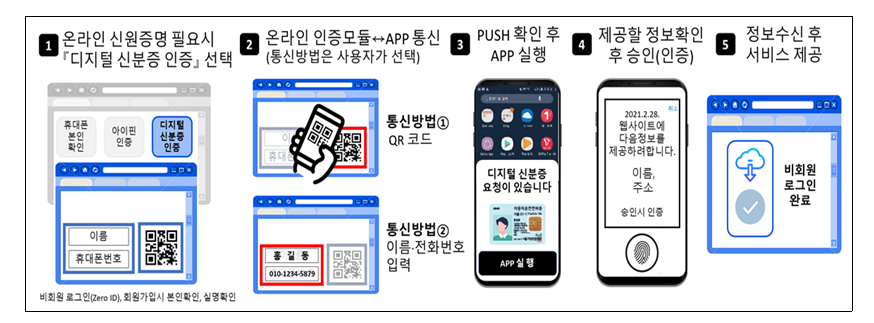 ② 웹사이트에서 휴대폰 번호‧이름 입력, 휴대폰에서 신원확인 요청 메시지 수신