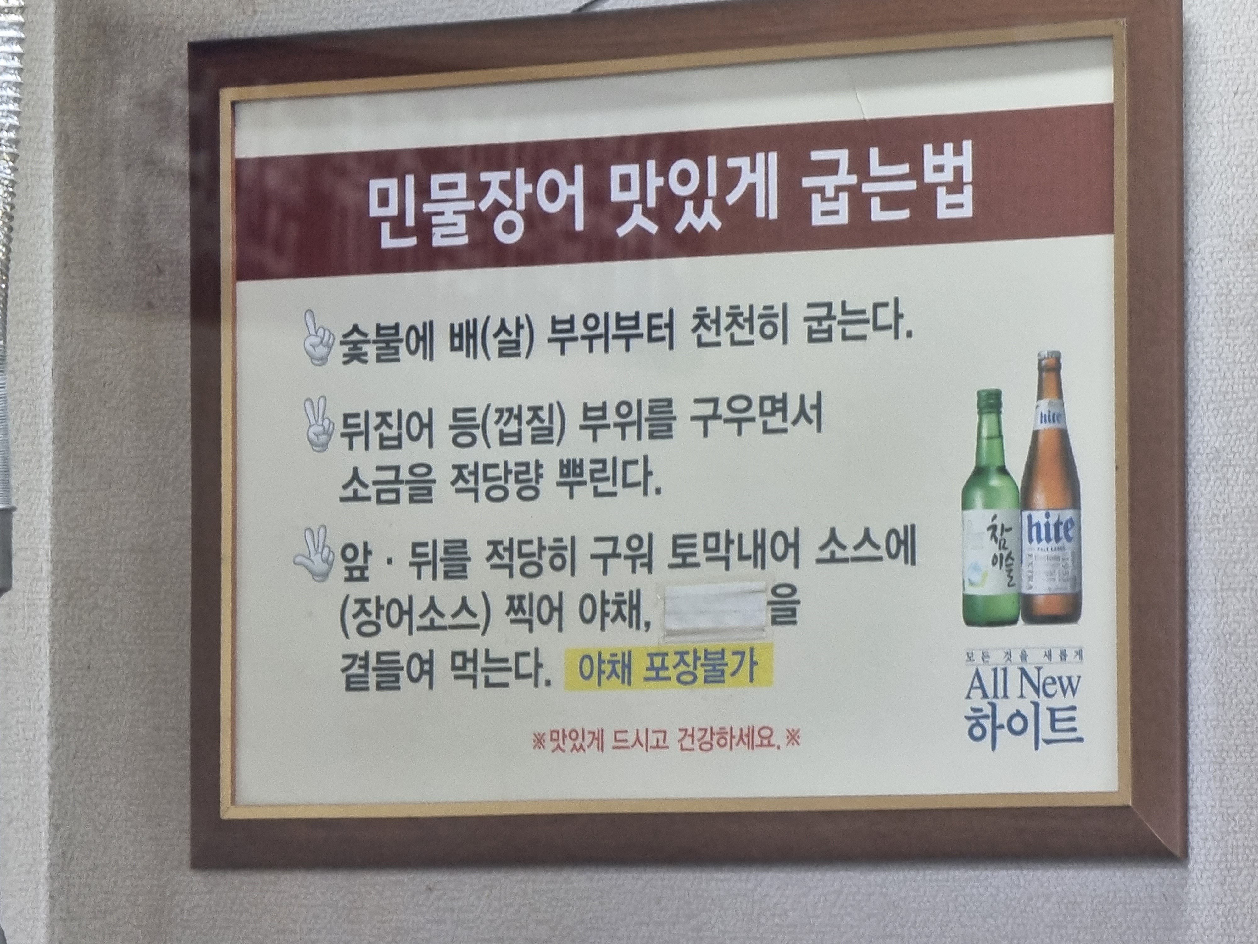 고양 근처 장어 맛집 "장어 대장"에는 [아래 사진]과 같이 장어구이 방법 안내문이 벽에 붙어 있습니다.