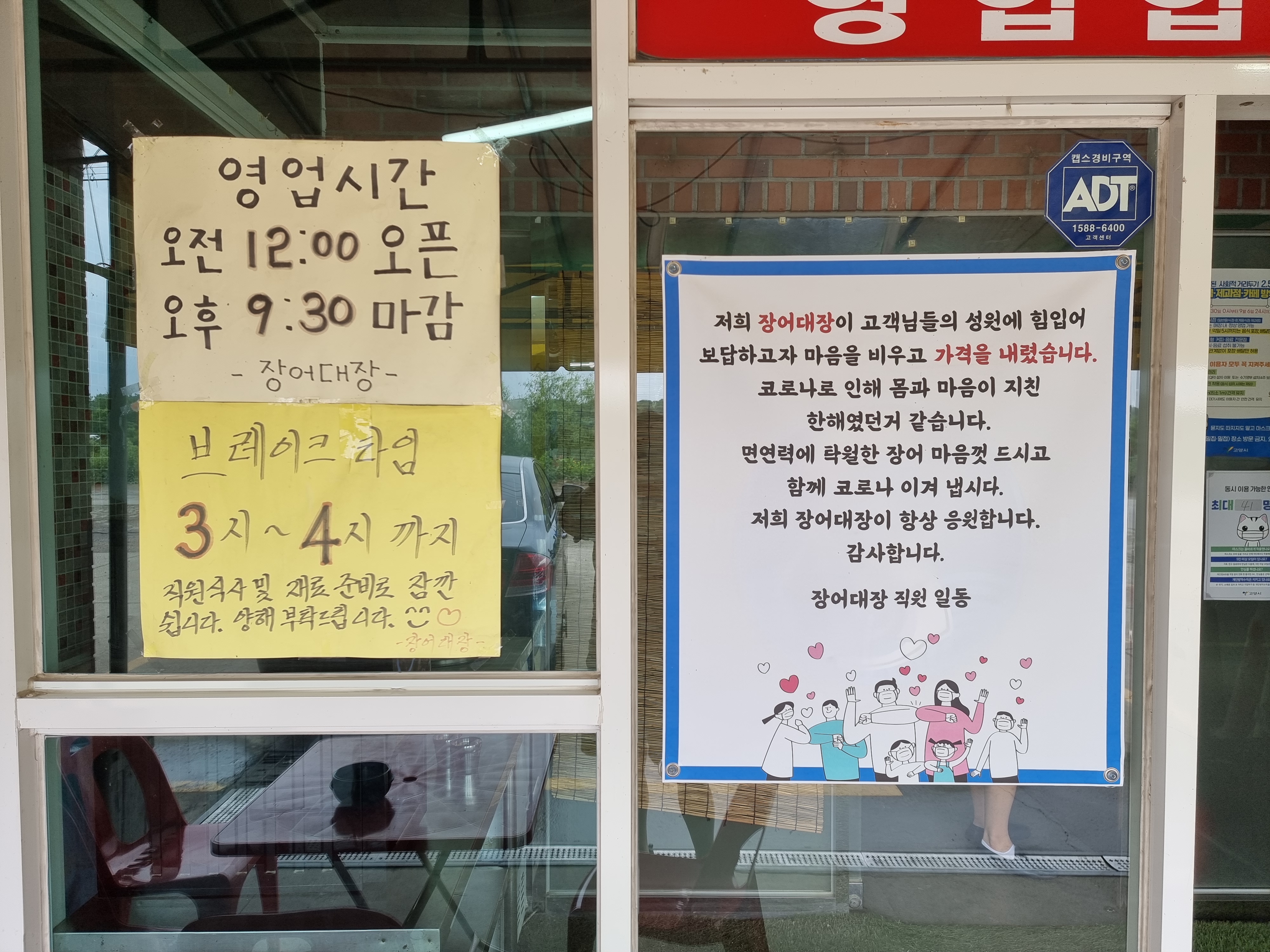 식당 입구 출입문에는 다음과 같이 훈훈한 안내문이 있어 소개합니다.