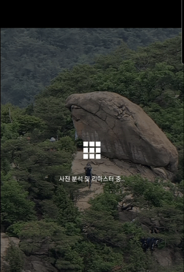 사진 리마스터 메뉴를 클릭하면 스마트폰은 [아래사진]과 같이 "사진 분석 및 리마스터 중"이라는 메시 지을 잠시 보여 주고 바로 결과물을 사용자에게 보여줍니다.