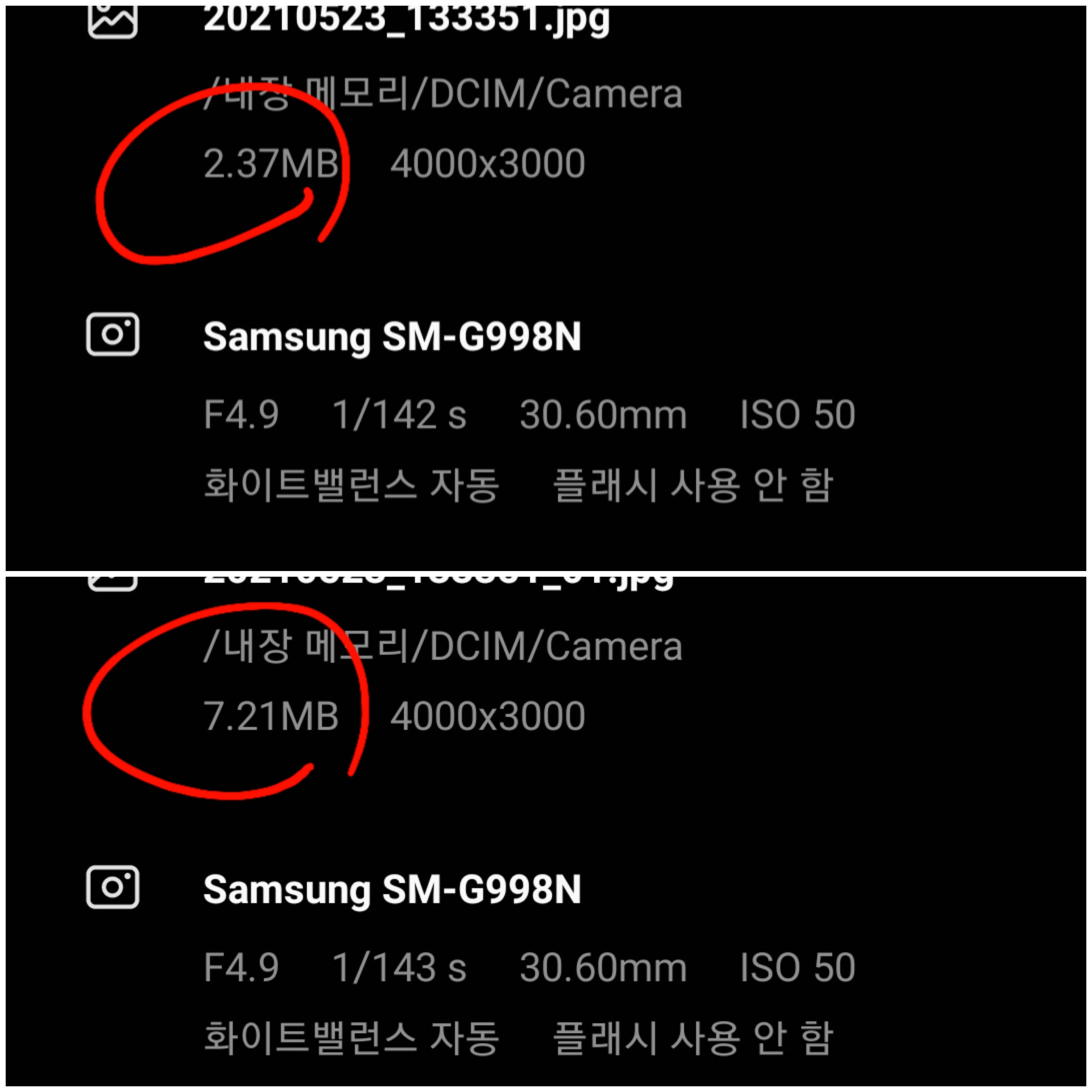 지금까지 갤럭시 사진 편집 기능의 하나인 "사진 리마스터"와 리마스터 전 후 이미지 용량 변화에 대해 살펴봤습니다.